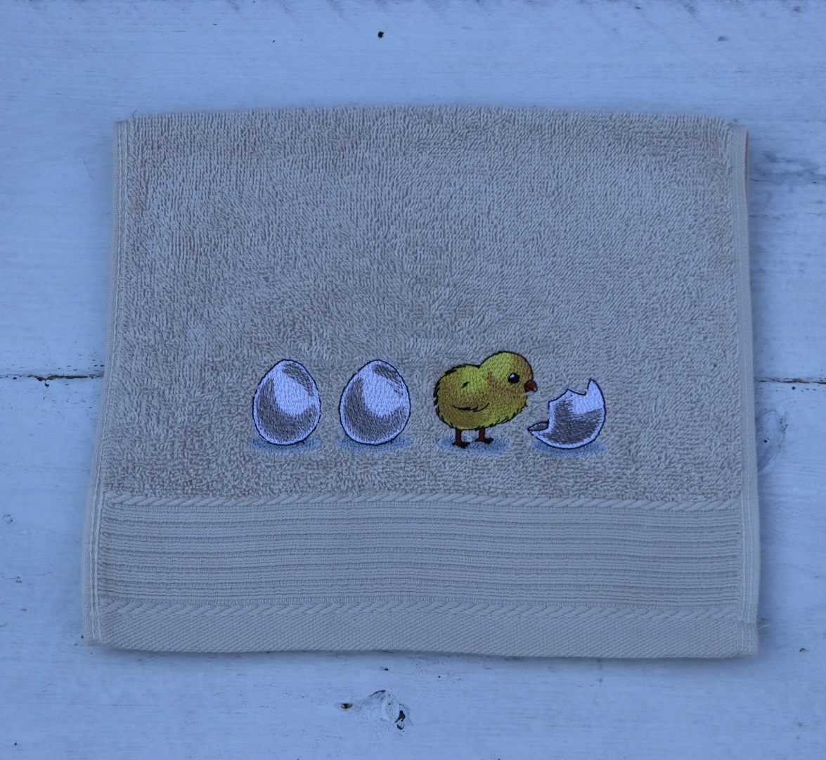 Gastendoekje beige met eieren en kuikentje