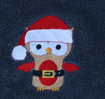 Gastendoekje donkergrijs met een uil met kerstmuts aantal
