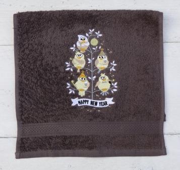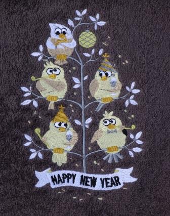 Gastendoekje donkergrijs met uilenboom en Happy New Year aantal