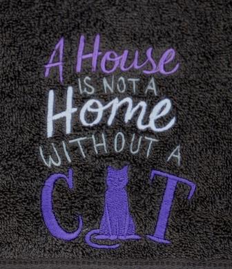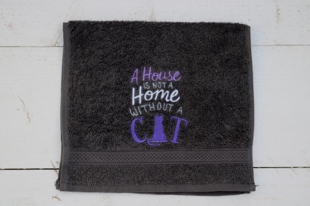 Gastendoekje donkergrijs voor een huis met een kat “A house is not a home without a cat”