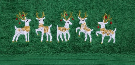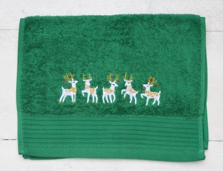 Gastendoekje kerstgroen met vrolijke hertjes op een rij