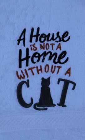 Gastendoekje wit met de tekst A house is not a home without a cat aantal