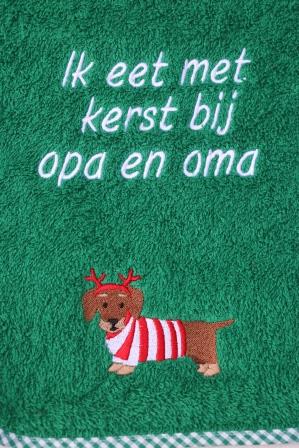 Groene kerstslab met een teckel om bij opa en oma te eten aantal