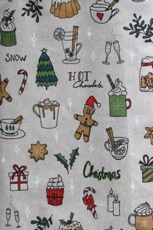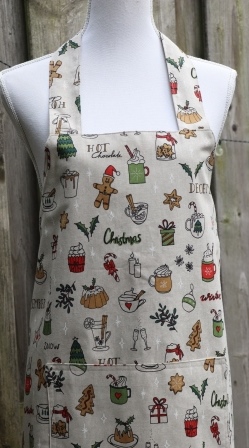 Kerst keukenschort met hot chocolate, warm drinken, kerstboom, champagne,koekjes en nog veel meer kerst printjes aantal