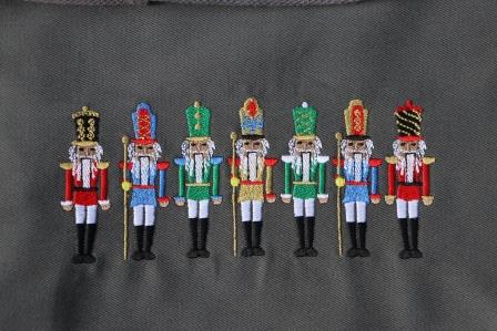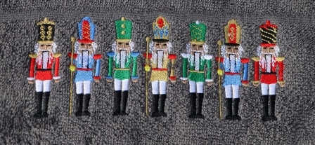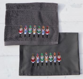 Keukenhanddoek en theedoek donkergrijs met zeven notenkrakers op een rij aantal