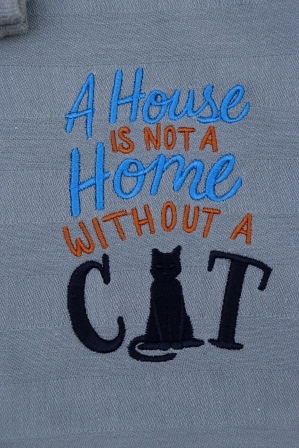 Keukenhanddoek en theedoek grijs-groen met de tekst A house is not a home without a cat aantal