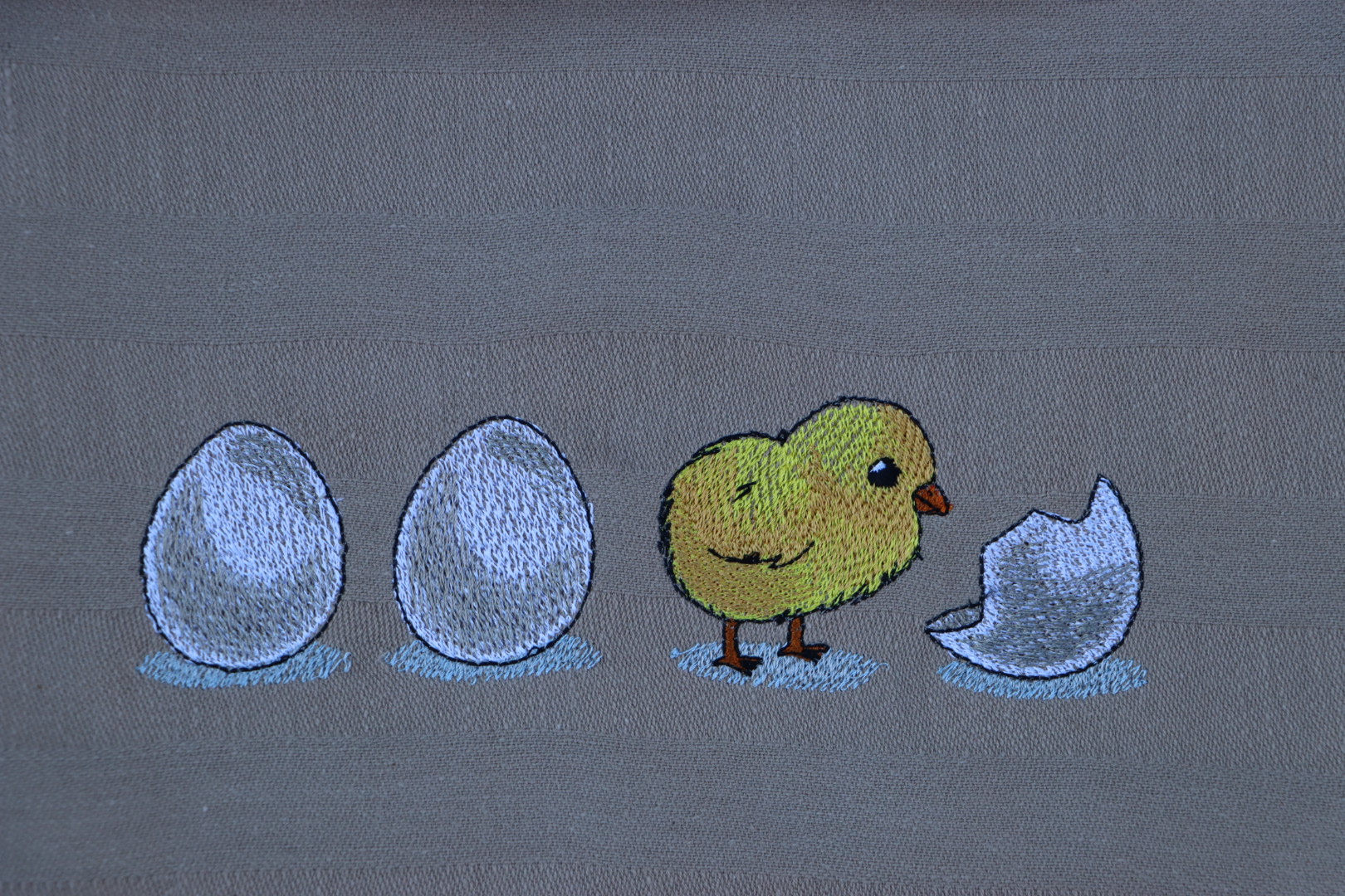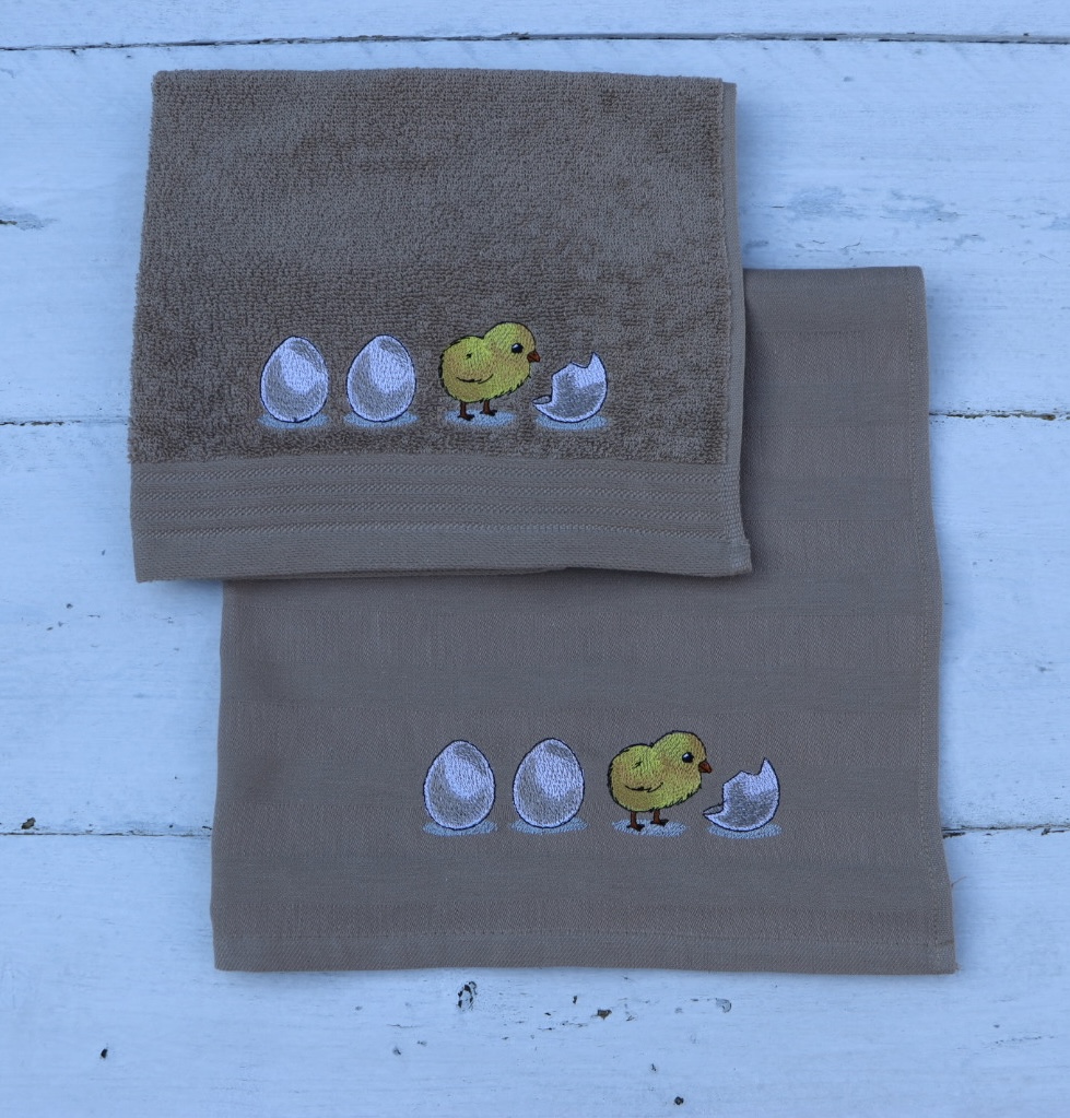 Keukenhanddoek en theedoek kaki met eieren en kuikentje