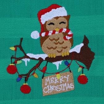 Keukenhanddoek en theedoek kerstgroen met uiltje op tak en Merry Christmas