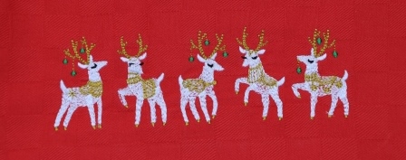 Keukenhanddoek en theedoek rood met vrolijke hertjes op een rij aantal