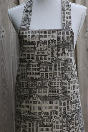 Keukenschort kaki met gevelhuisjes/Hollandse huizen
