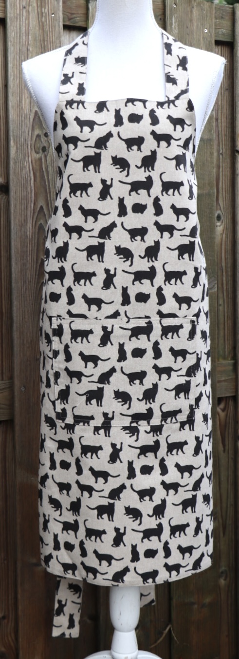 Keukenschort kaki met zwarte katten aantal