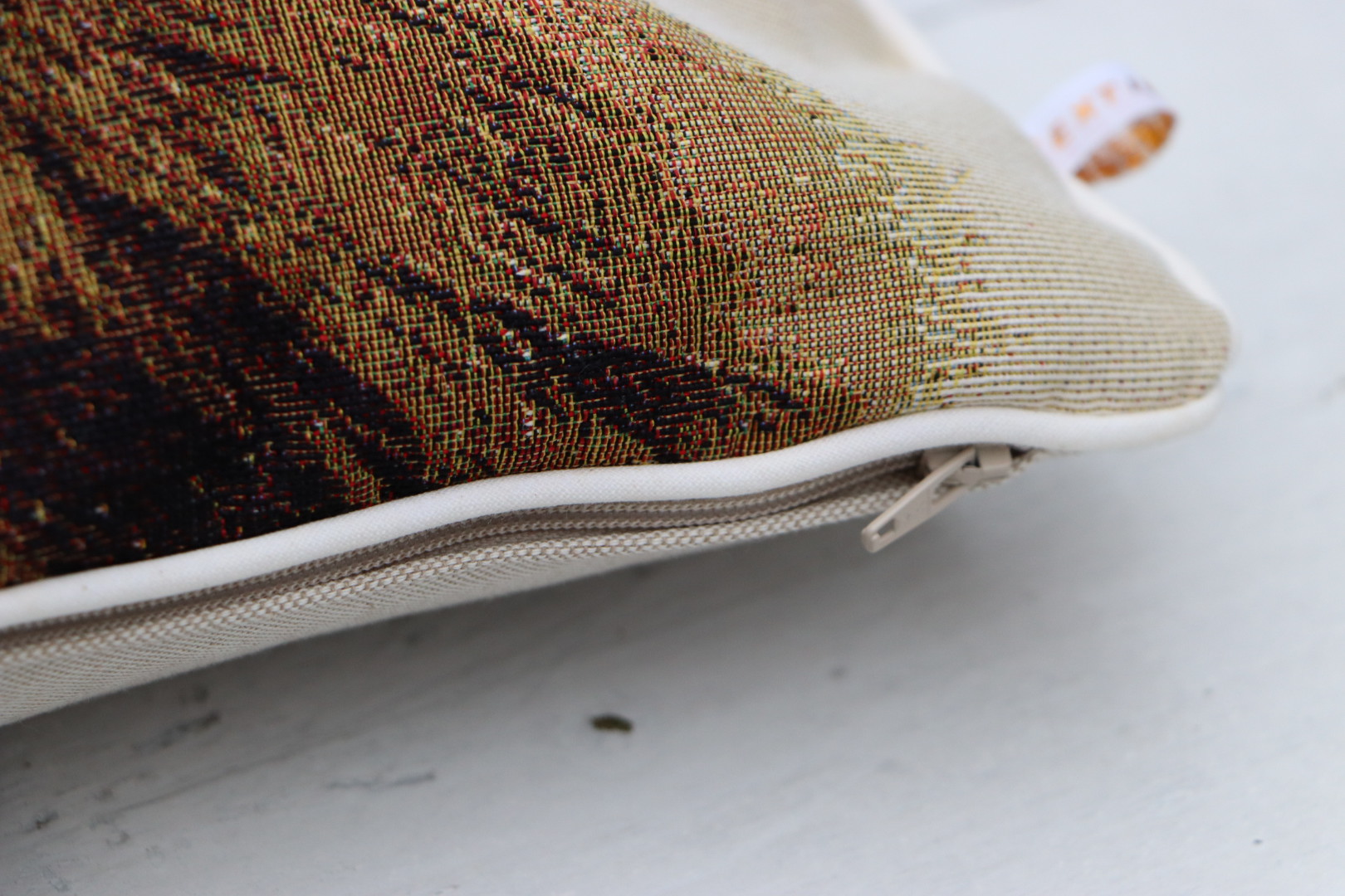 De kussenhoes is 45×45 cm , de achterkant is effen .