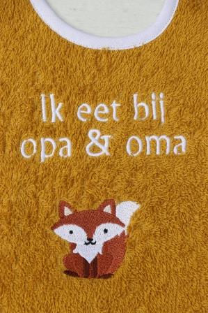 Slab okergeel met een vos om bij opa en oma te eten aantal