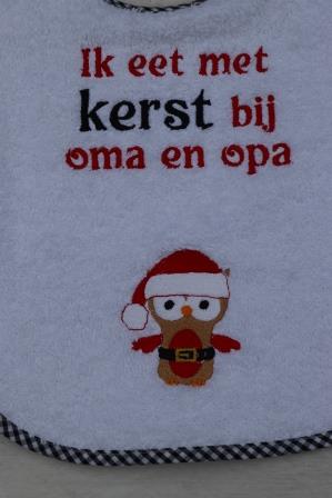 Slab om met kerst bij opa en oma te eten- met uiltje met kerstmuts
