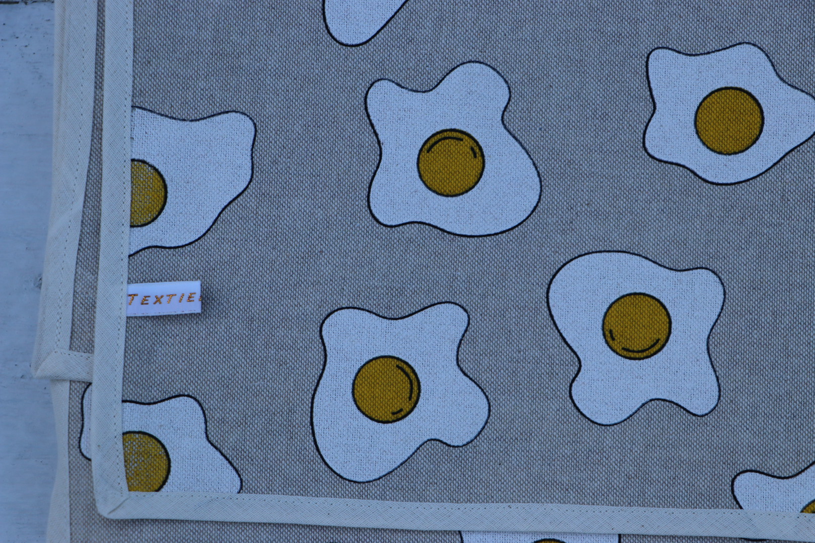 Tafelkleed linnen katoen met gebakken eitjes 140×200 cm